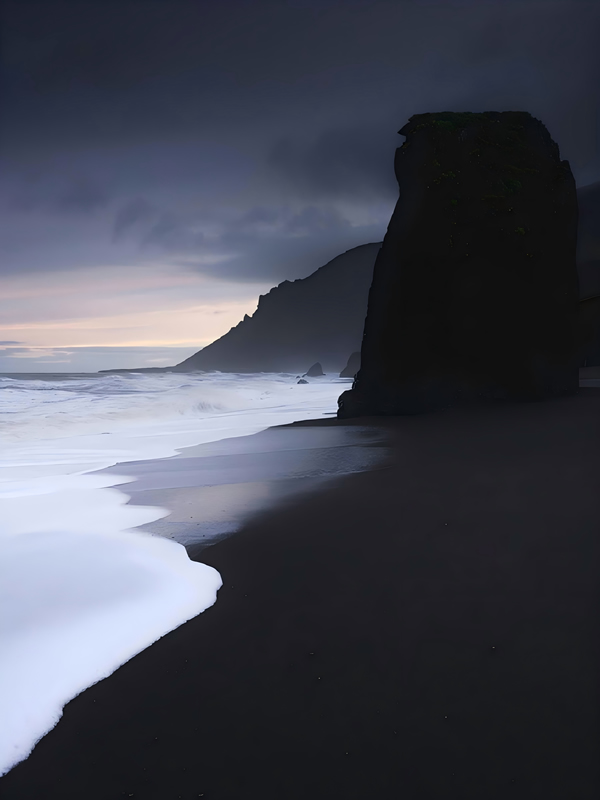 The design concept for this project was inspired by four natural elements—waves, mountains, stones, and sunset. White wave-like forms are applied to the ceiling and floor, creating a sense of flow and lightness, while black mountain tones define the walls and emphasize verticality. To avoid a monotonous atmosphere, circular and square light fixtures are embedded in key positions, introducing rhythm and layered illumination.